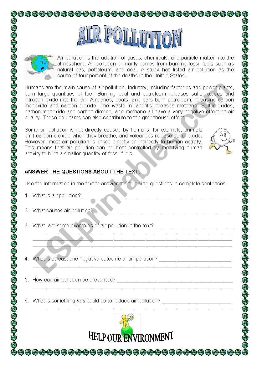 AIR POLLUTION ESL Worksheet By Sandrami60