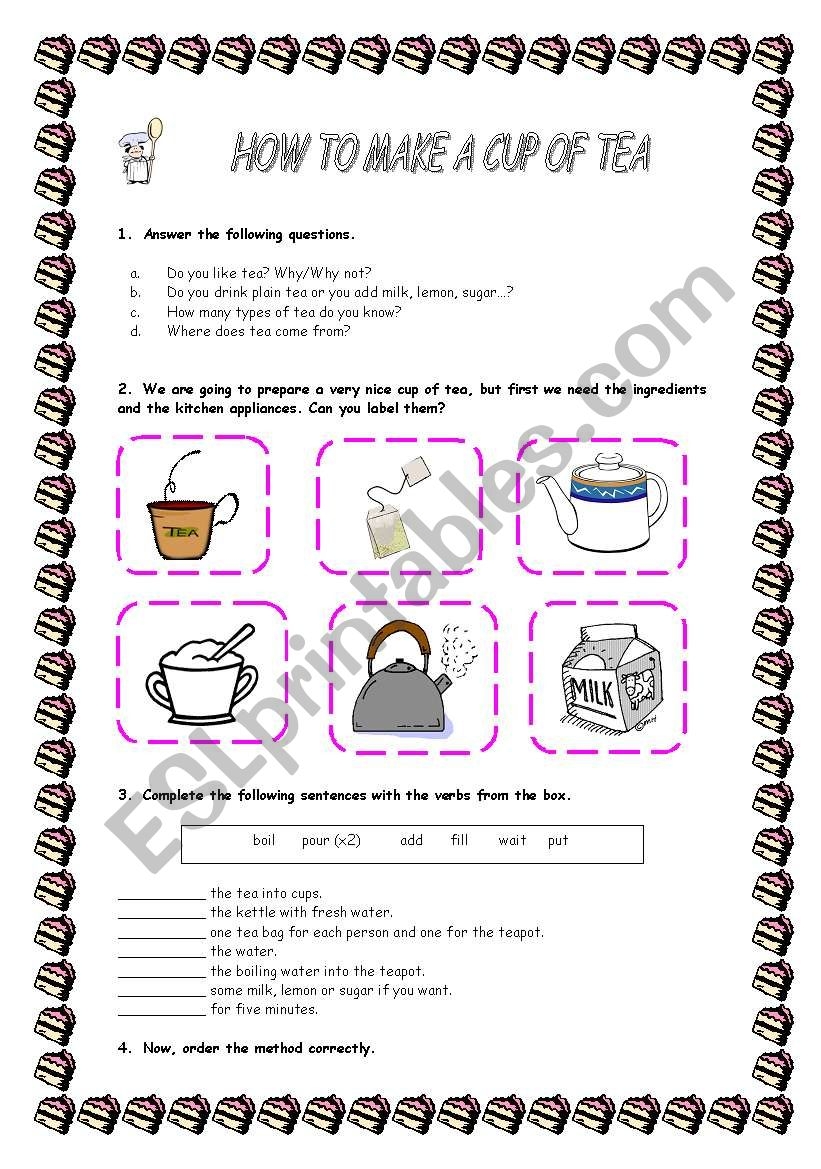 HOW TO MAKE A CUP OF TEA ESL Worksheet By Abba