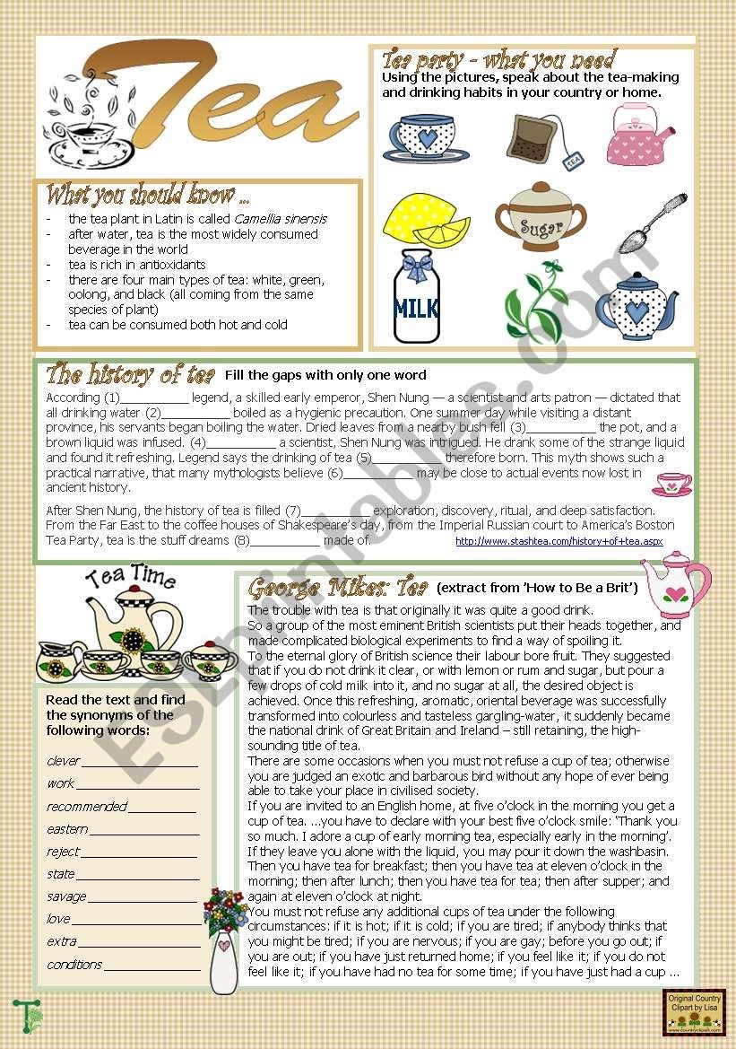 Tea ESL Worksheet By Tecus