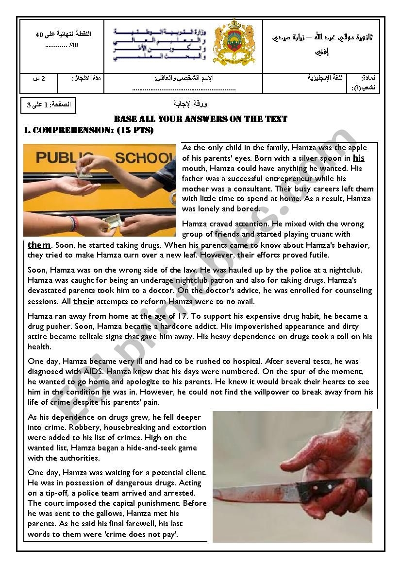 Crime Story Teenagers Drug Addiction Reading ESL Worksheet By