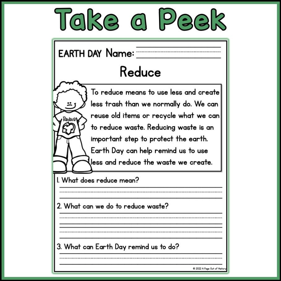 1st 2nd Grade Reading Comprehension Earth Day Passages U0026 Questions Classroom Homeschool No Prep Printable Standards aligned Etsy