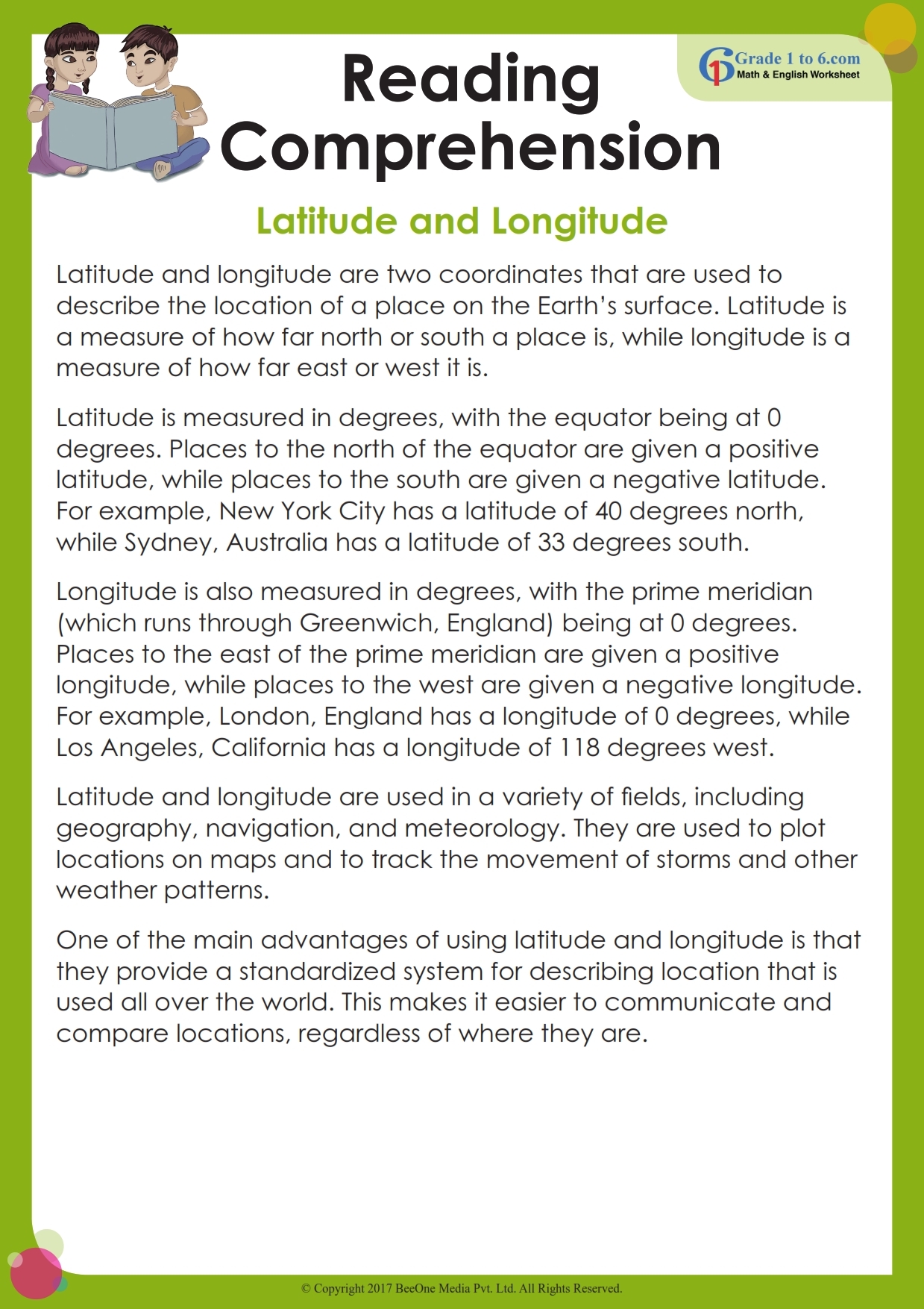 Reading Comprehension Worksheet For Grade 5 Grade1to6