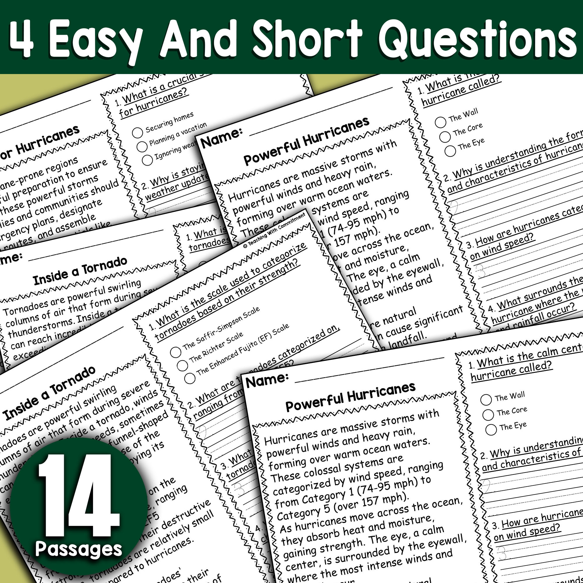 Hurricanes And Tornadoes Reading Comprehension Passages With Questions Made By Teachers
