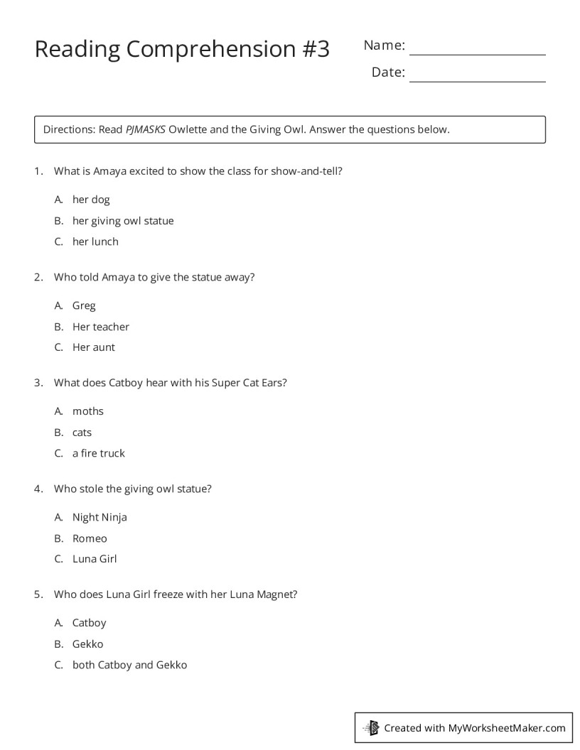 Reading Comprehension Worksheet Maker