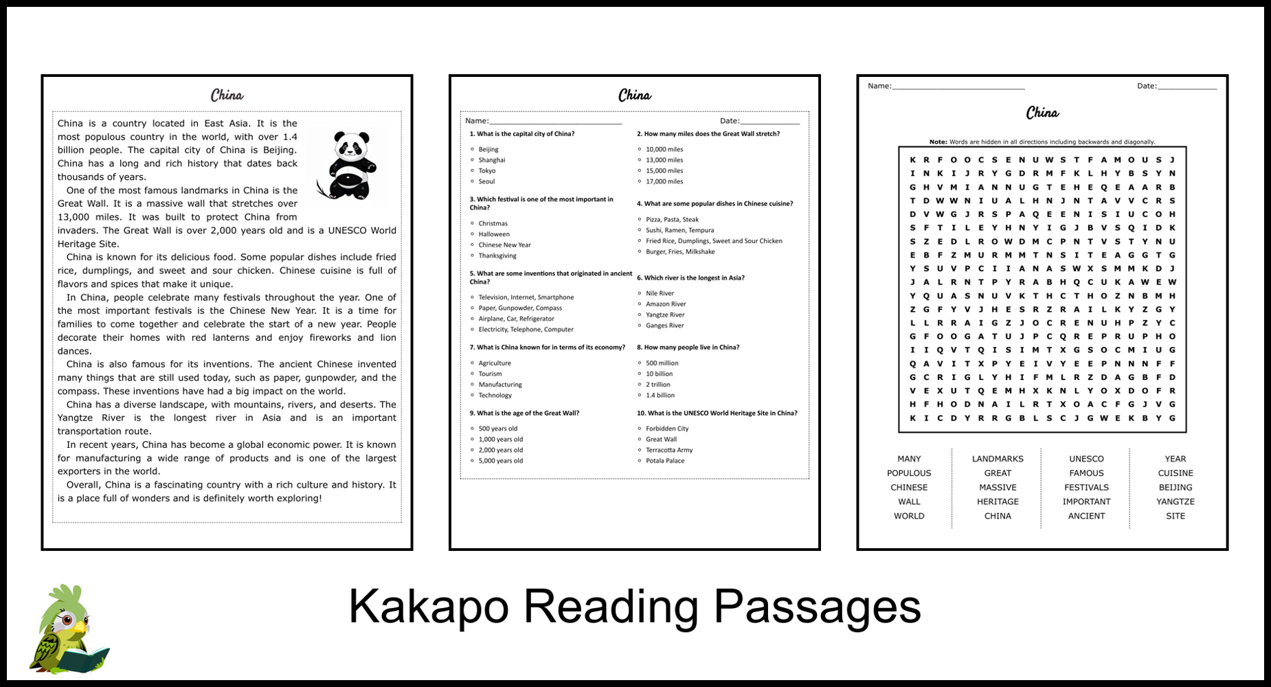 So, why wait? Download our Reading Comprehension Worksheet On China today and take your students on an exciting journey through the wonders of this incredible country. Watch as their reading skills improve and their knowledge of China grows. Happy teaching!