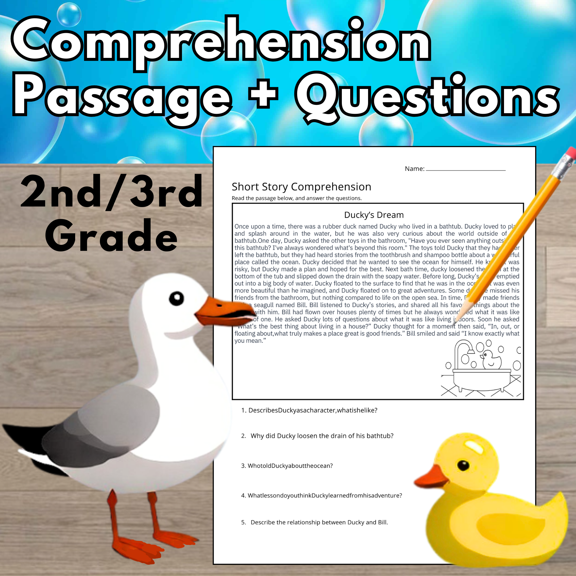Comprehend Literature Reading Fiction Passages Questions 2nd 3rd Grade Worksheet