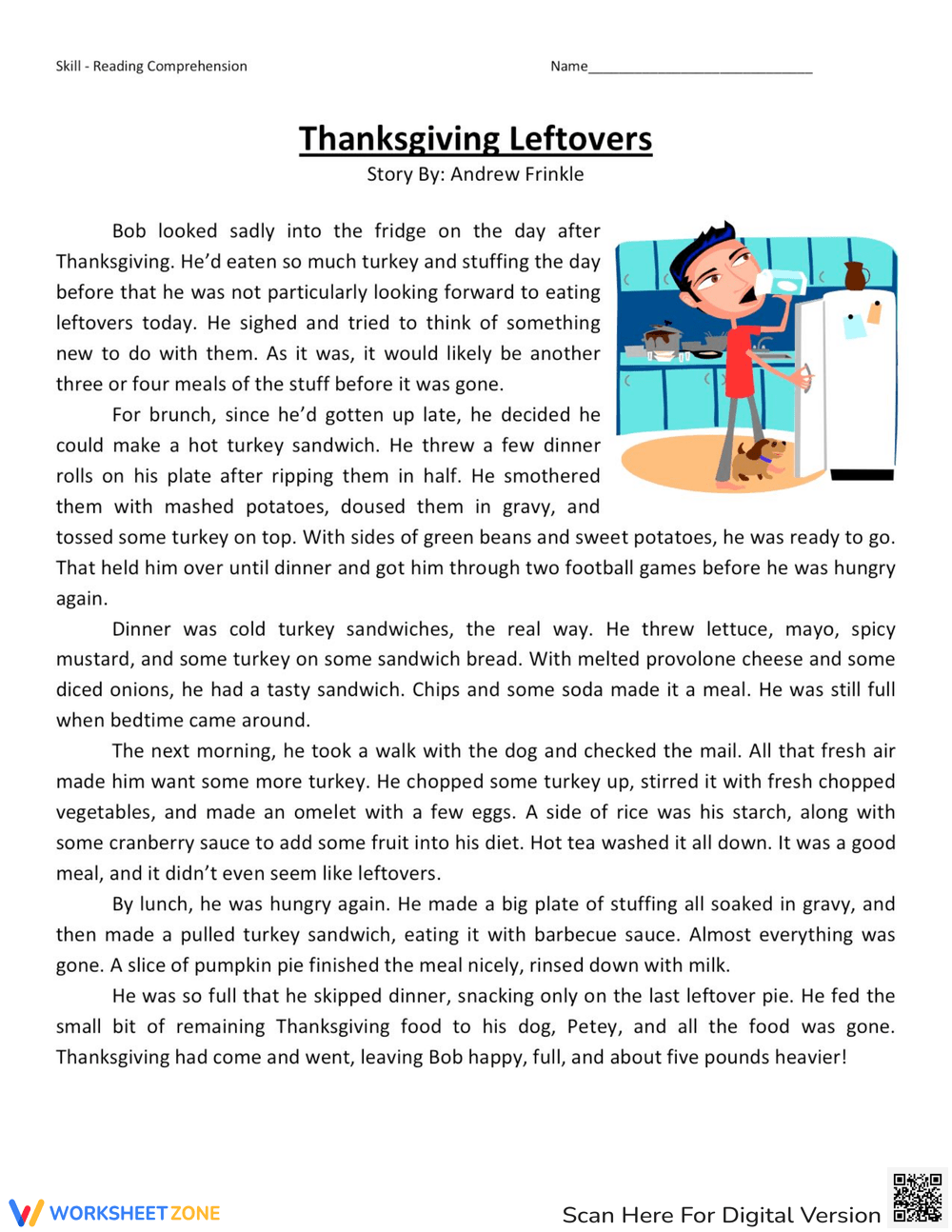 Grade 5 Thanksgiving Reading Comprehension PDF Worksheets 2025