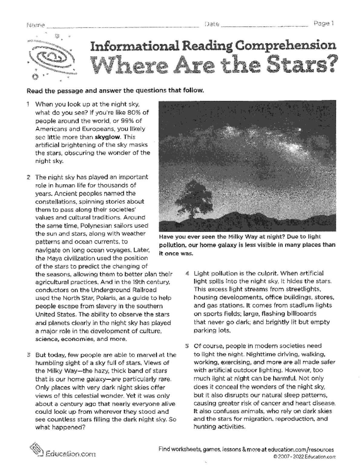 So why wait? Start exploring the world of stars with your child today by incorporating reading comprehension worksheets about stars into their daily routine. Watch as their reading skills improve and their fascination with the universe grows with each worksheet completed.
