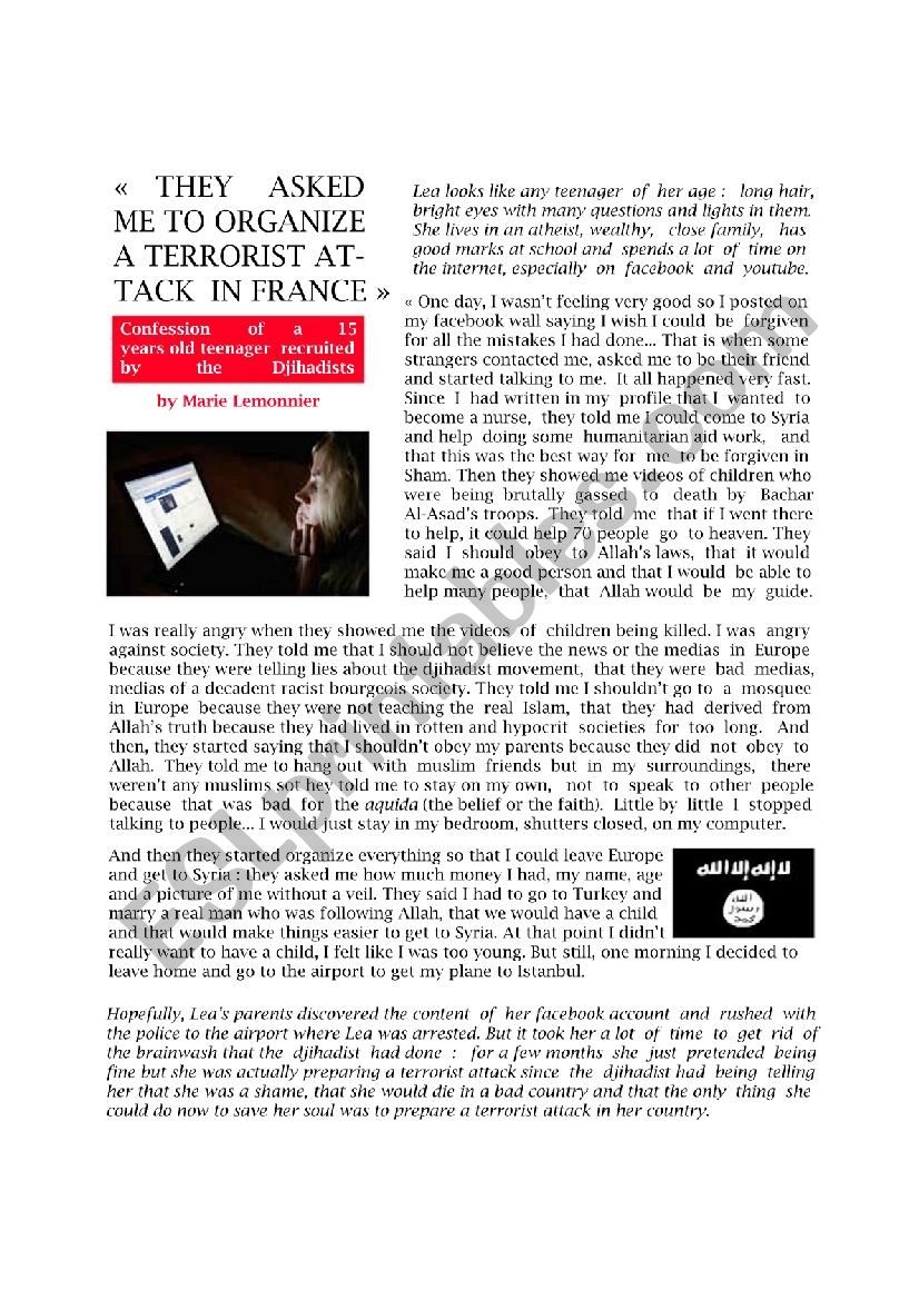 Reading Comprehension B1 B2 Djihad Teen ESL Worksheet By Malaval