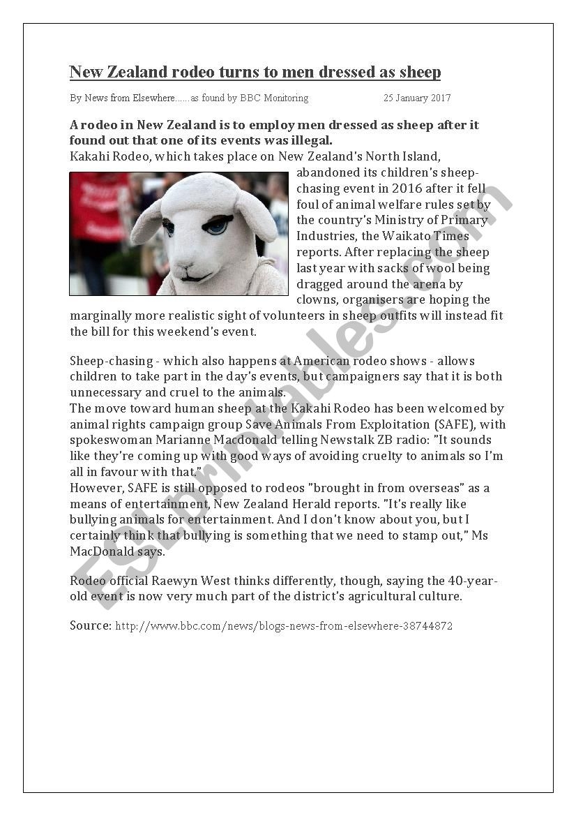 Reading Comprehension 2 Stories About NZ Animals ESL Worksheet By FrauSue