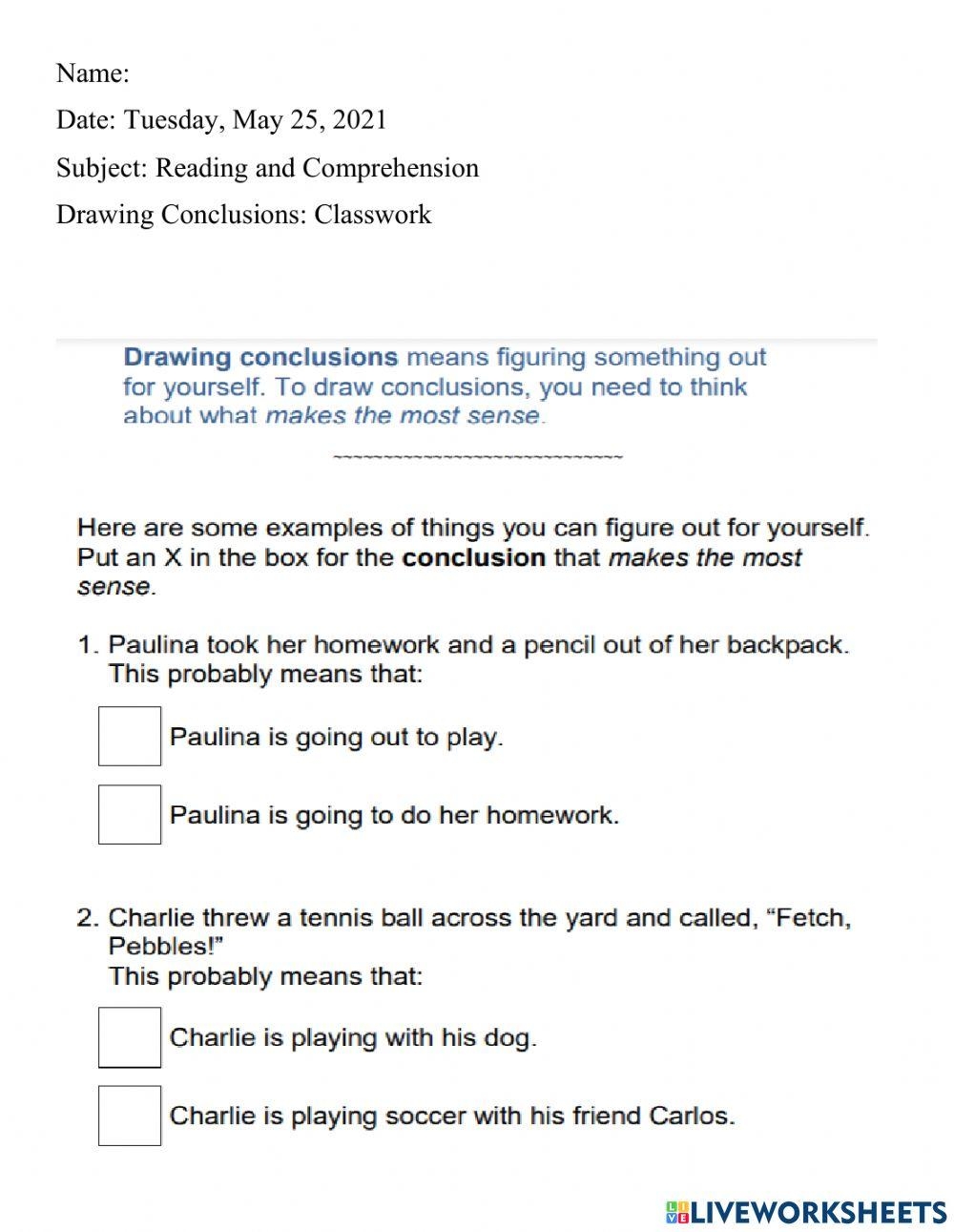 Drawing Conclusions Worksheets For Students StoryboardThat