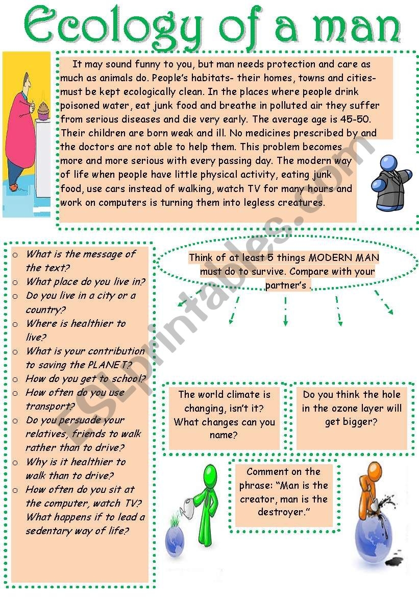 ECOLOGY OF A MAN READING COMPREHENSION DISCUSSION THINKING Worksheets Library