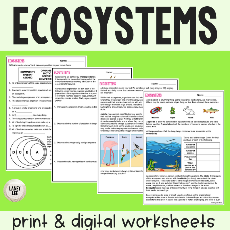 Ecosystems Reading Comprehension Worksheets Laney Lee
