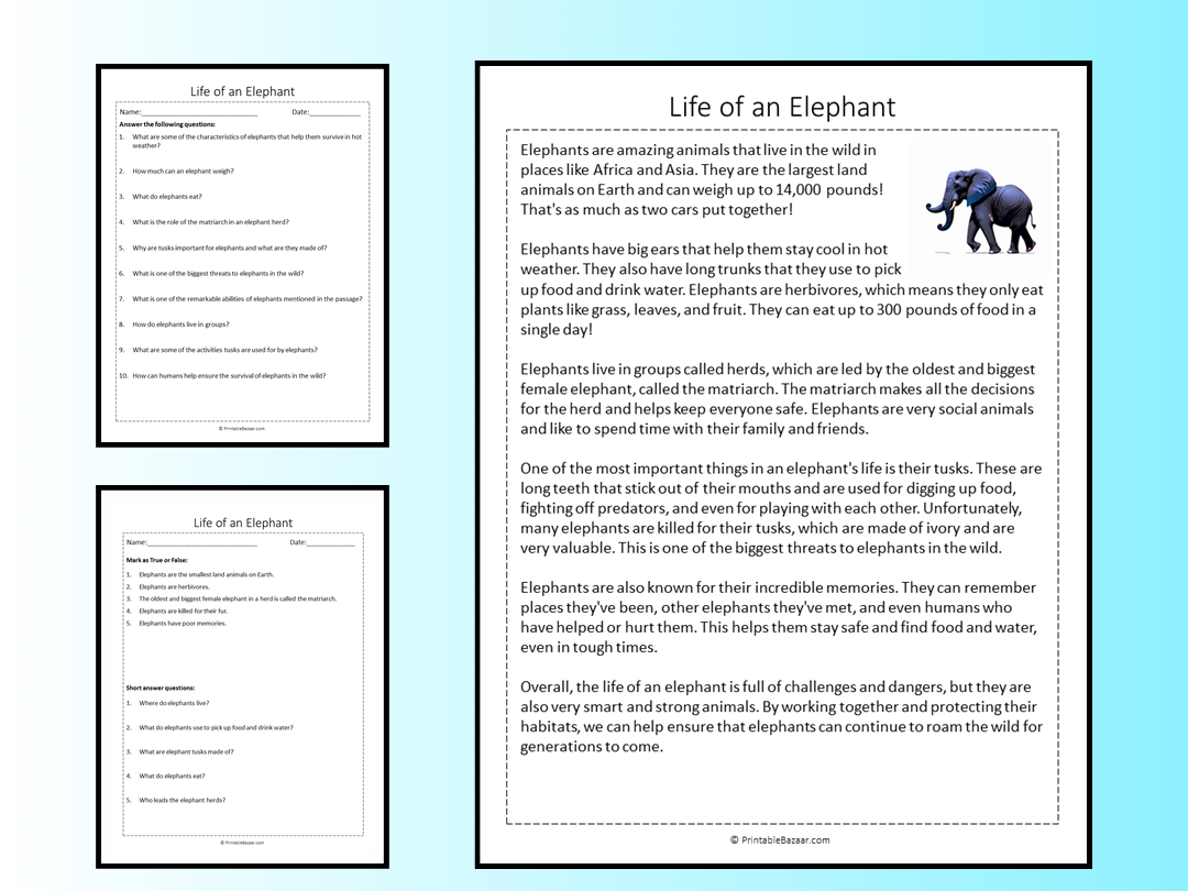 Reading comprehension worksheets about elephants offer a multi-faceted approach to learning, incorporating reading, critical thinking, and knowledge retention. Whether used in the classroom or at home, these worksheets are a valuable resource for educators and parents alike.