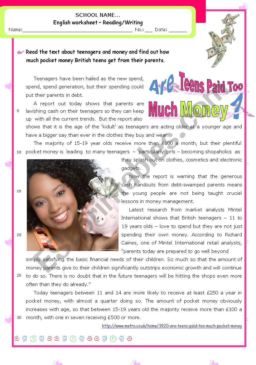 Are Teens Getting Too Much Pocket Money Reading Comprehension ESL Worksheet By Mena22
