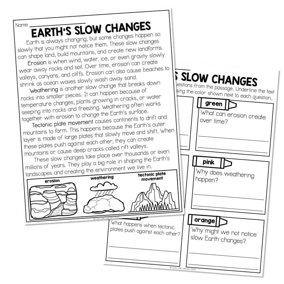 Reading Passage Earth s Slow Changes Lucky Little Learners