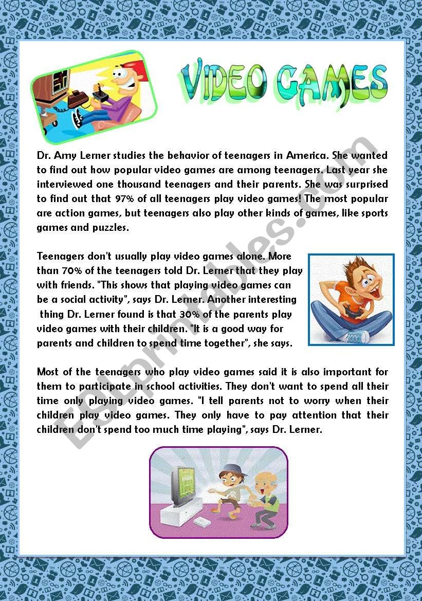 Reading Video Games ESL Worksheet By Tal kivity