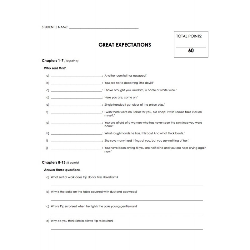 By engaging with these worksheets, students will not only enhance their understanding of “Great Expectations” but also improve their critical thinking and analytical skills. The questions and activities provided are designed to encourage thoughtful reflection and discussion, making the learning experience both enriching and enjoyable.