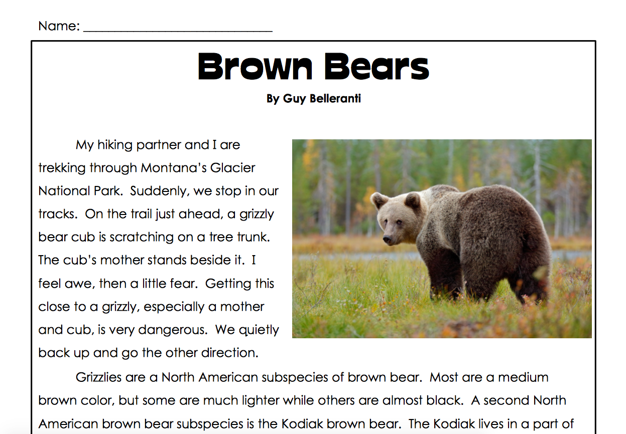 Reading Comprehension Worksheets Grizzly Bears