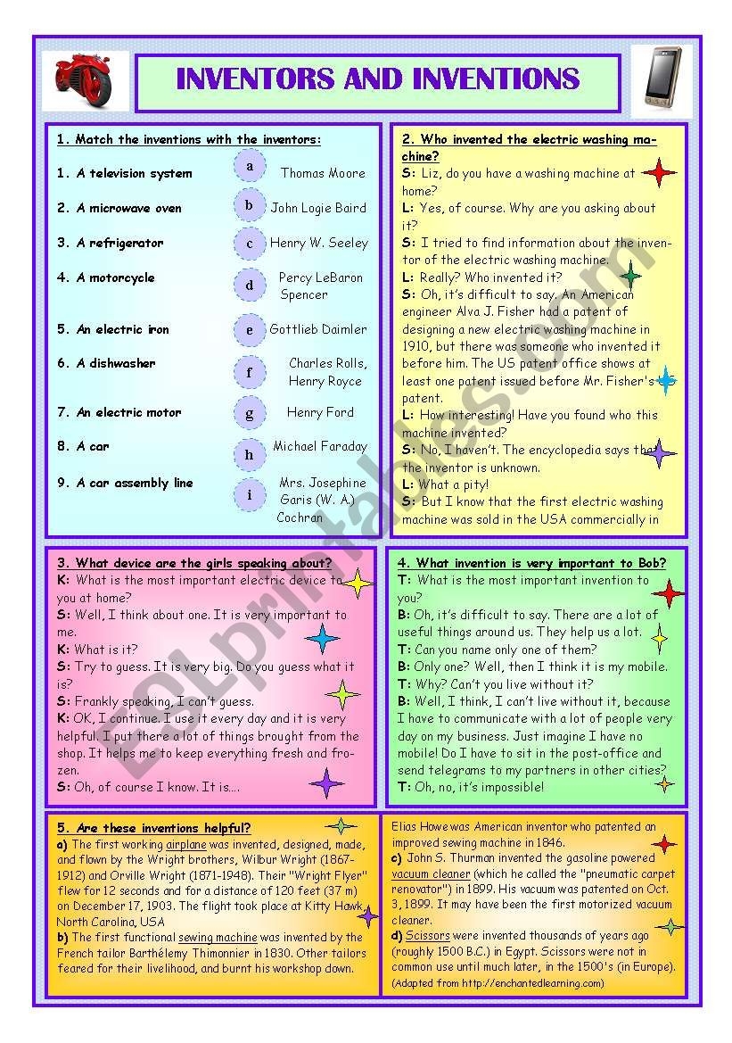 Famous Inventors Reading Comprehension ESL Worksheet By Profy2007
