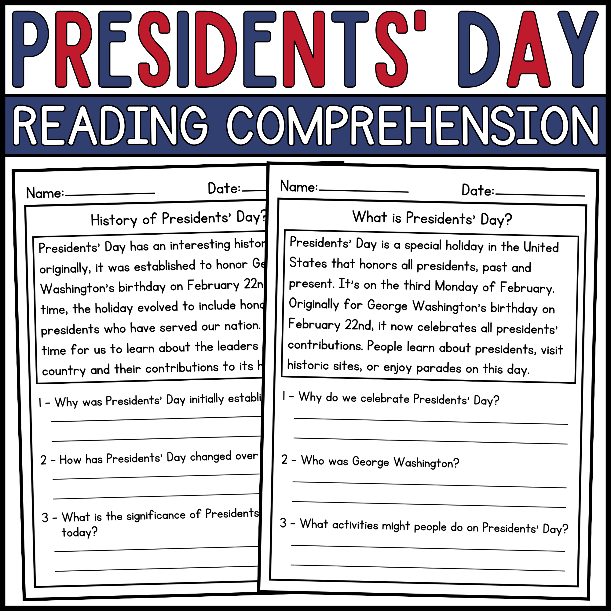 Presidents Day Reading Comprehension Passages And Questions Presidents Day Reading Passages Made By Teachers