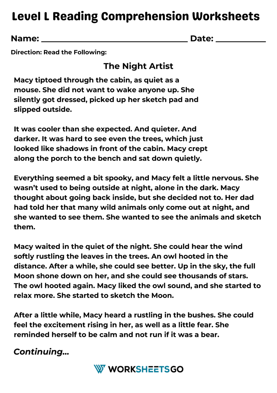 Level L Reading Comprehension Worksheets WorksheetsGO