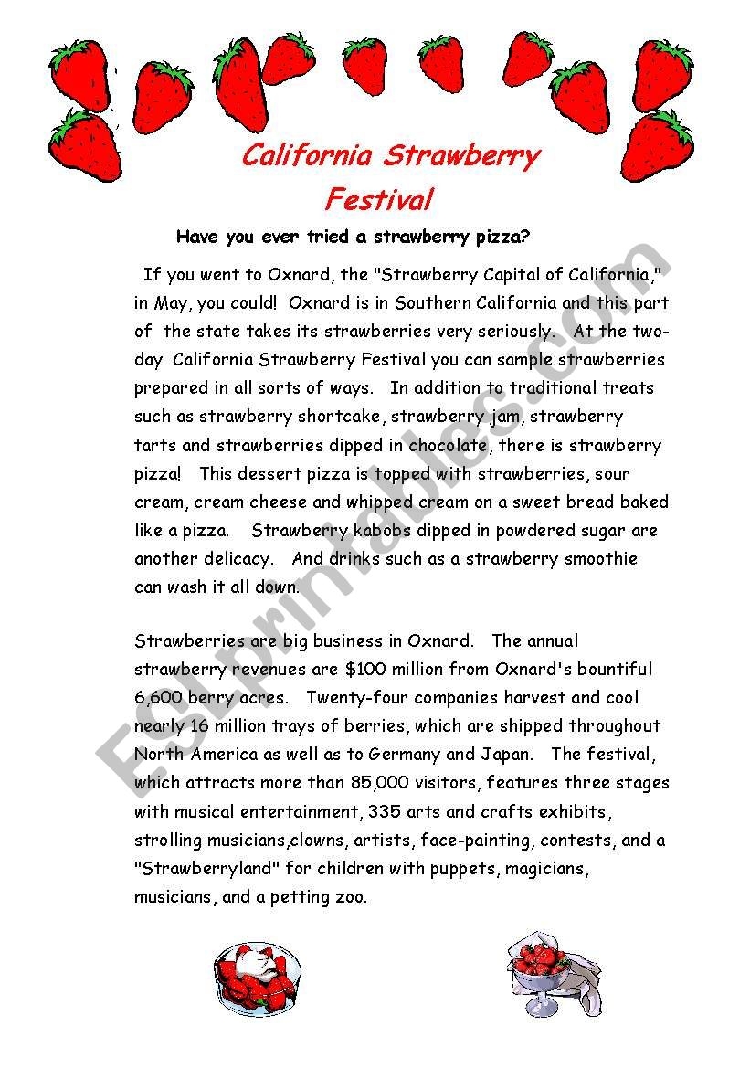 One popular topic for reading comprehension worksheets is on strawberries. These worksheets may include passages about the history of strawberries, their nutritional benefits, and how they are grown. By reading and answering questions about these texts, you can learn more about this delicious fruit.