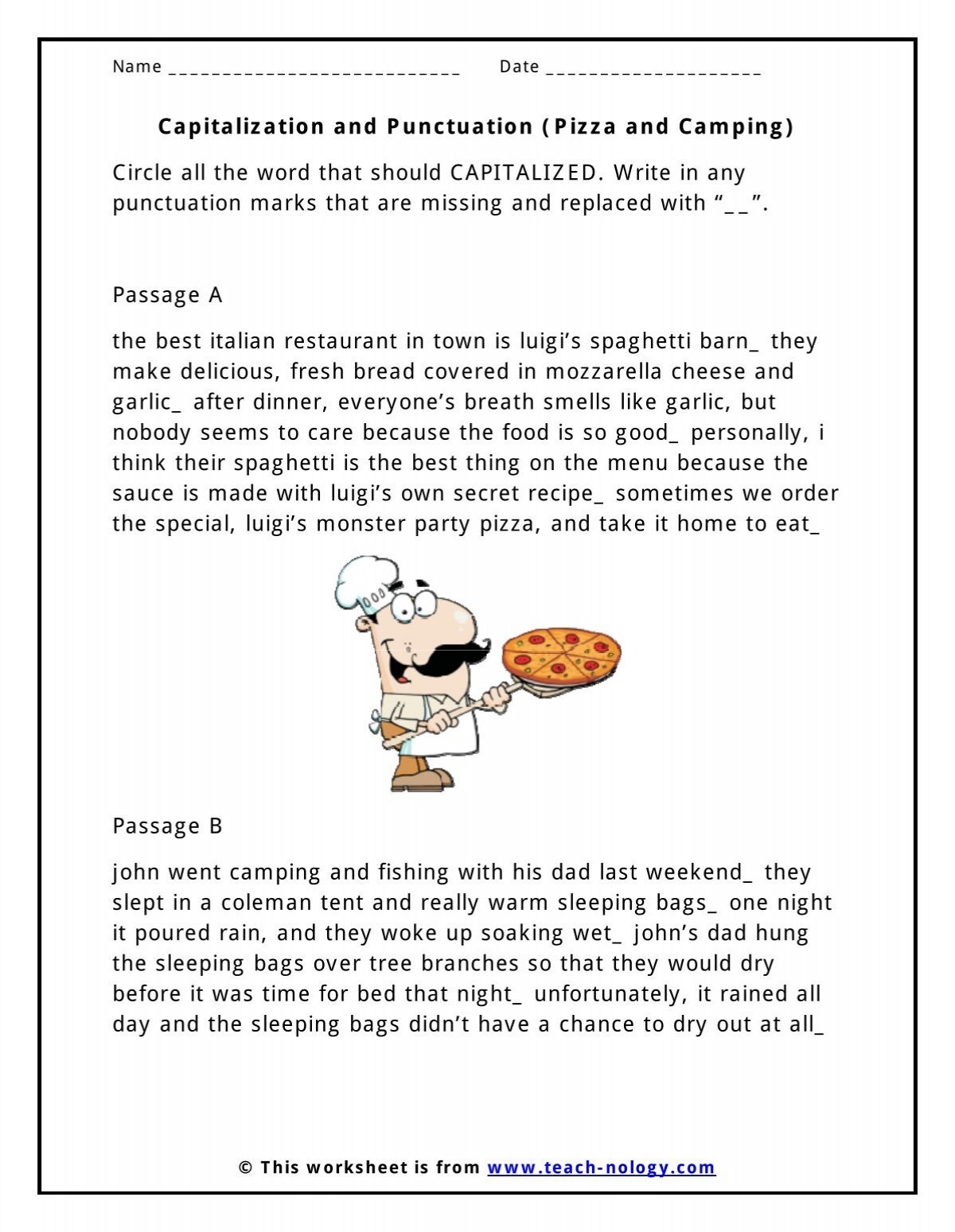 Capitalization And Punctuation Pizza And Camping Teach nology