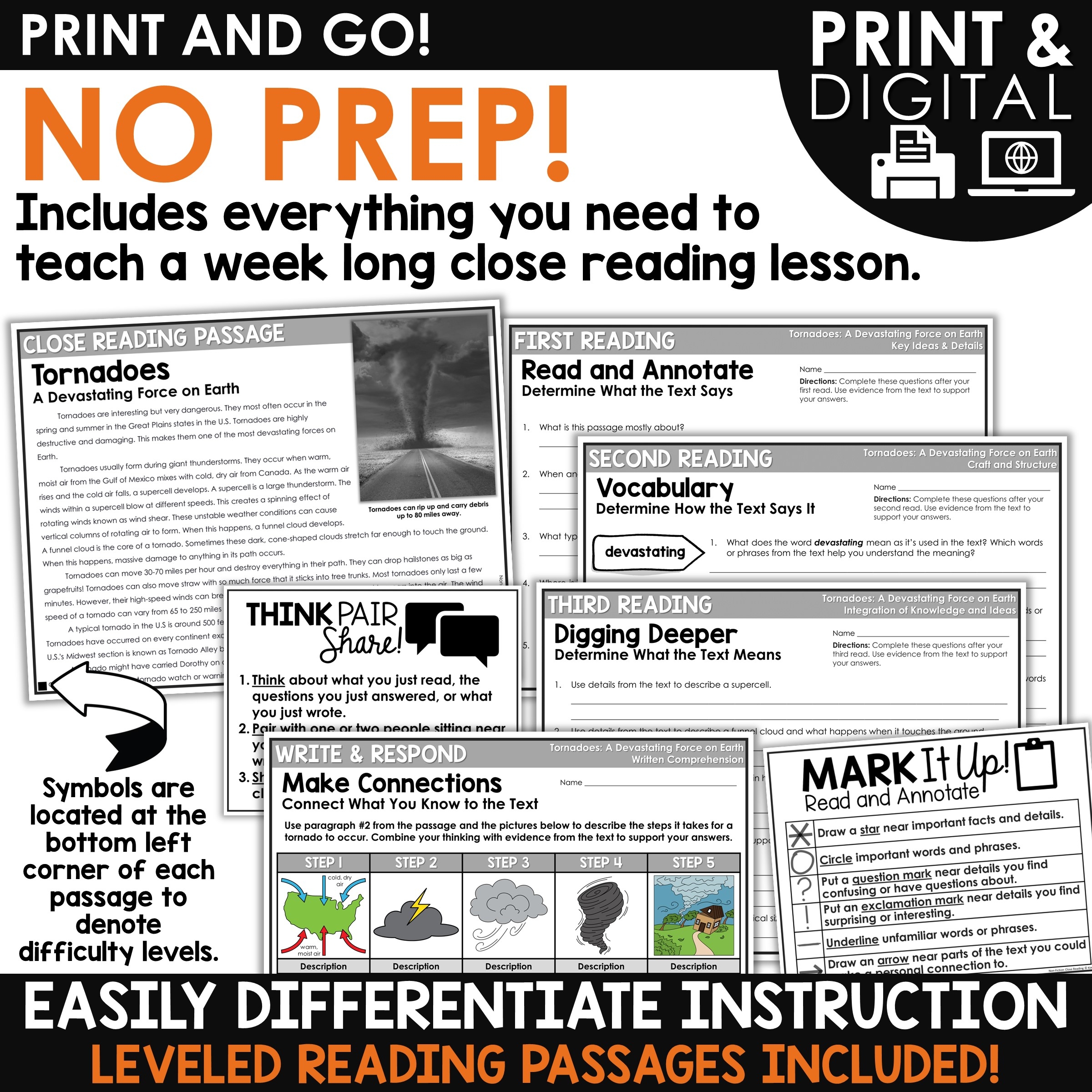3rd 4th 5th Tornadoes Reading Comprehension Packet