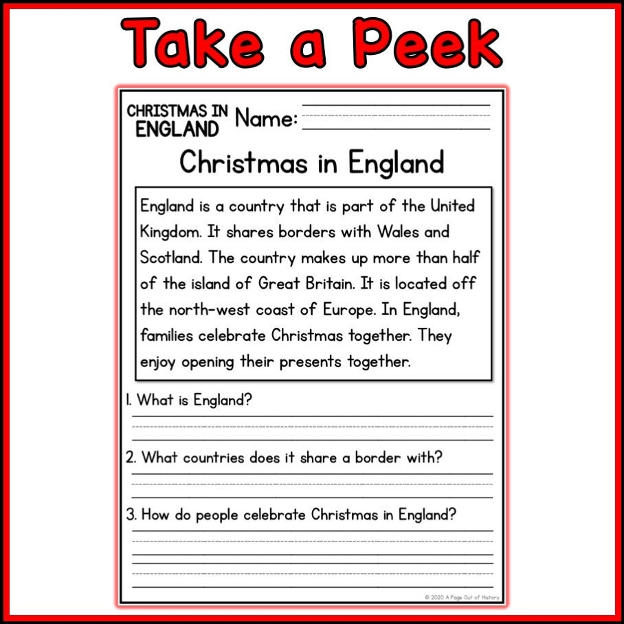 1st 2nd Grade Reading Comprehension Christmas In England Passages U0026 Questions Classroom Homeschool No Prep Printable Holidays Etsy UK