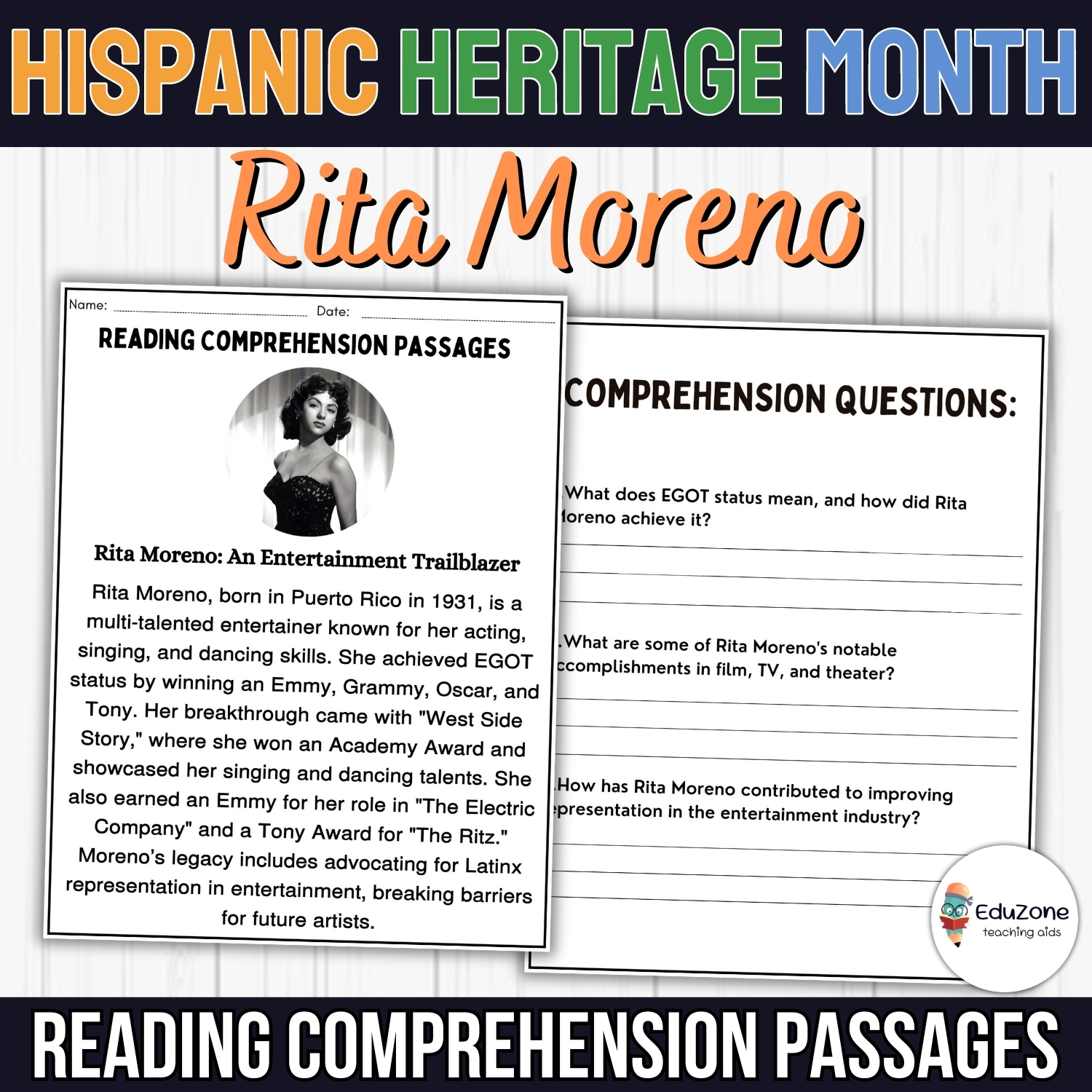 Rita Moreno Reading Comprehension Passage Hispanic Heritage Month Made By Teachers