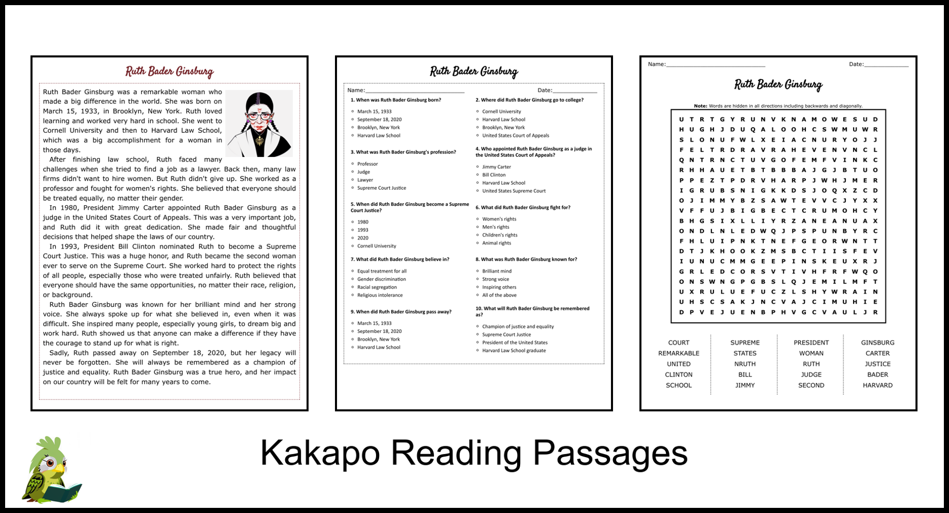 Ruth Bader Ginsburg Reading Comprehension Worksheets