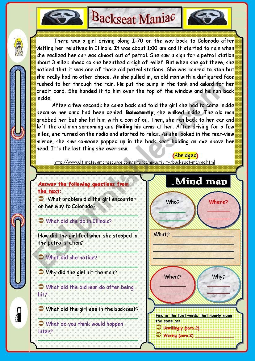 Scary Story Reading Comprehension ESL Worksheet By Feridrzg