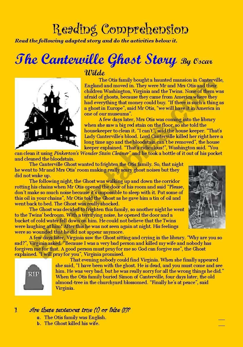 The Canterville Ghost Story Reading Comprehension ESL Worksheet By Miss Paulaey