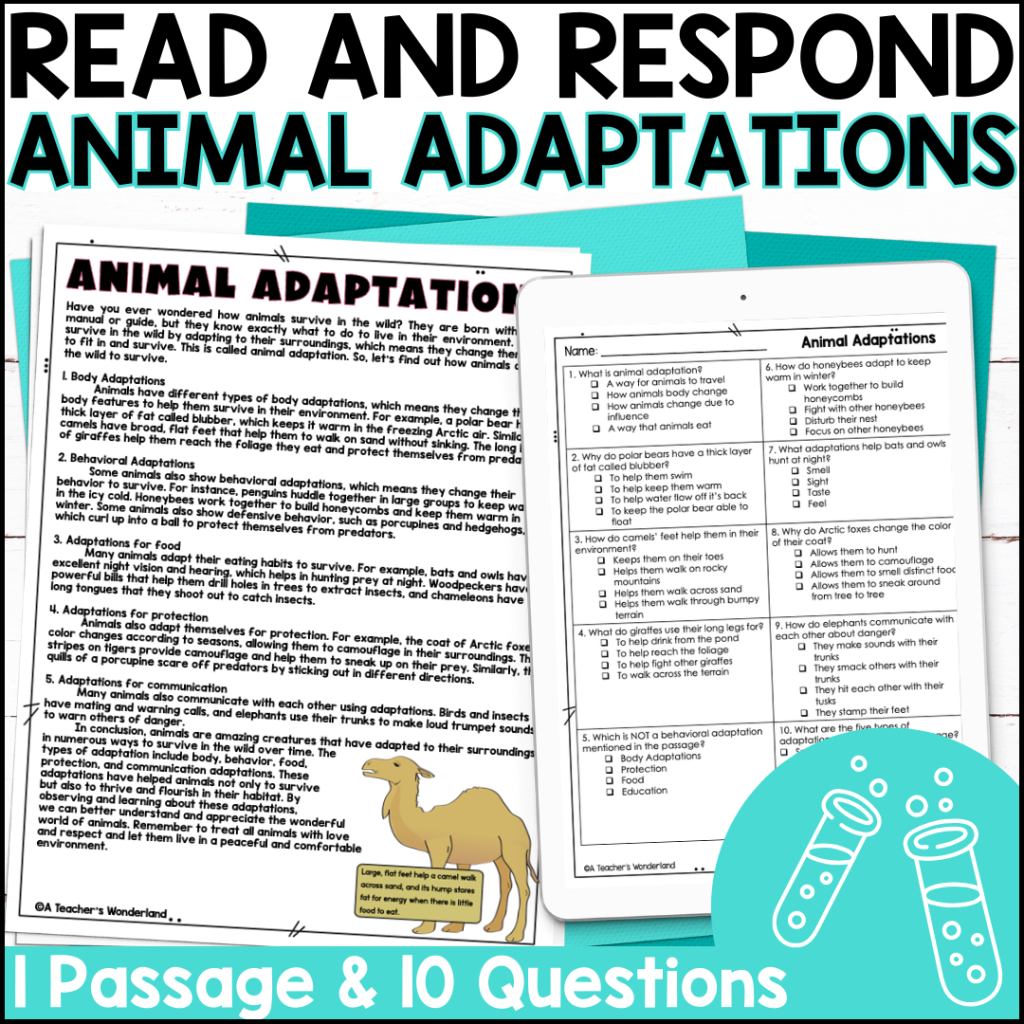Reading comprehension skills will be put to the test as students read passages about various animals and answer questions to demonstrate their understanding. This hands-on approach makes learning about animal adaptations both fun and informative.