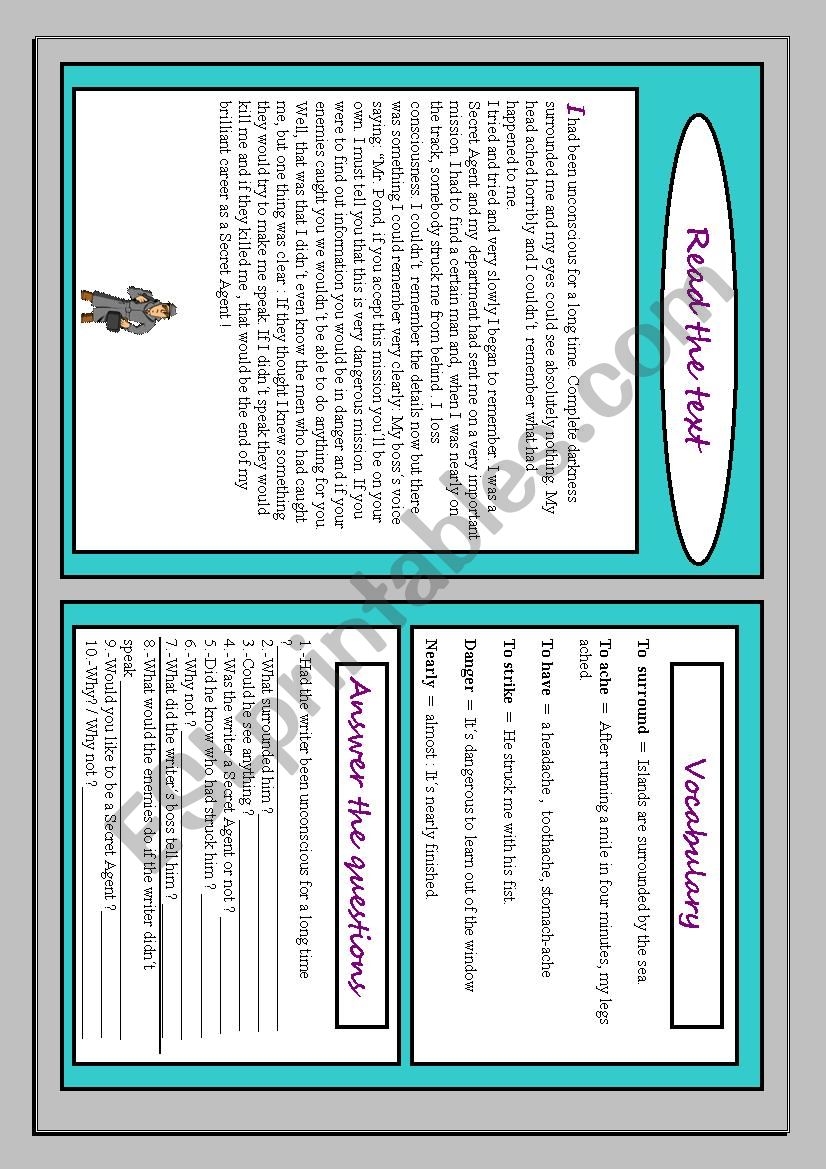 A SECRET AGENT READING ESL Worksheet By Bluedoll