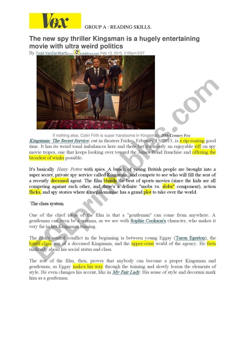 Kingsman The Secret Service ESL Worksheet By T Lyubchyk