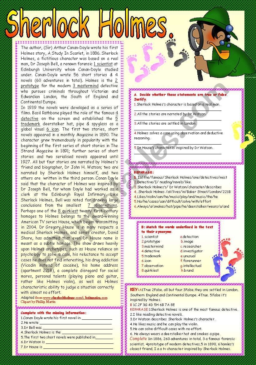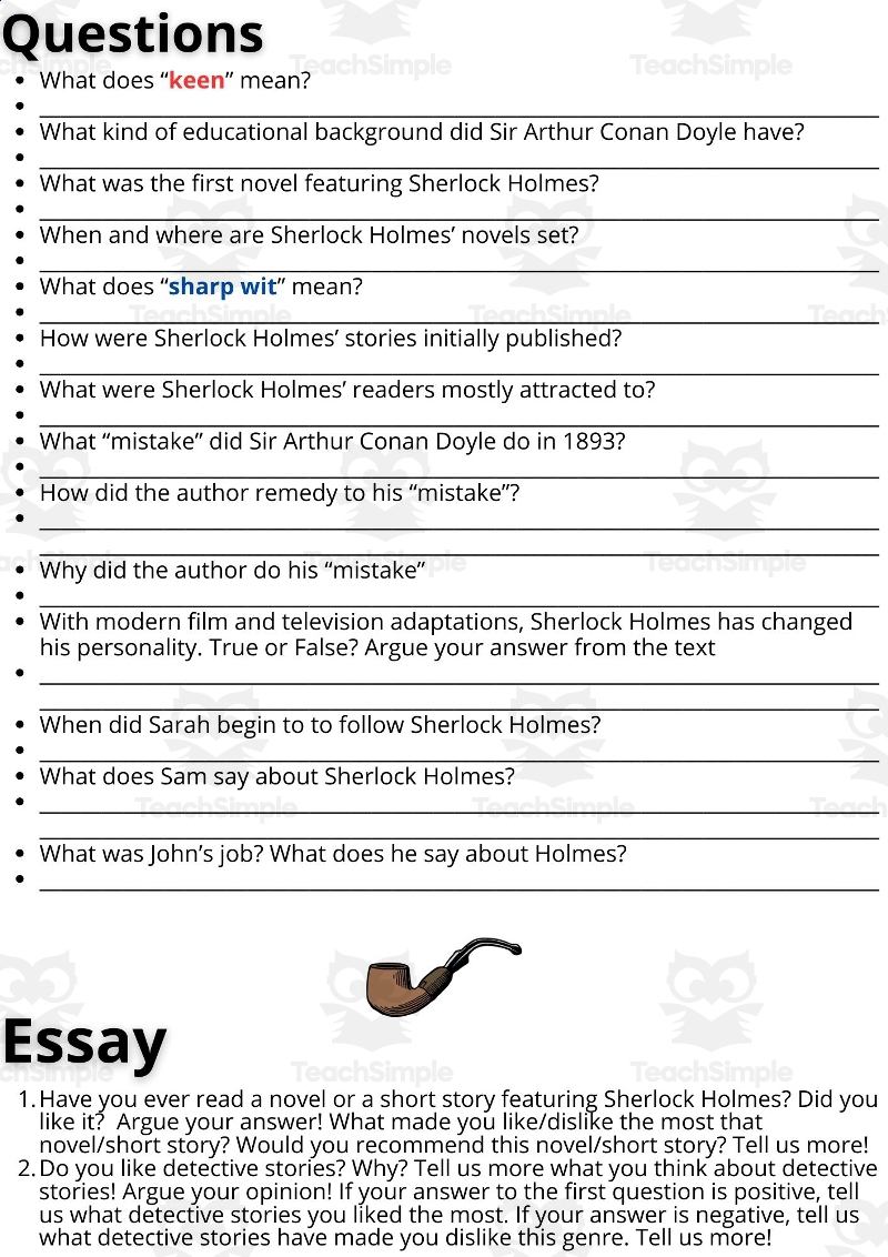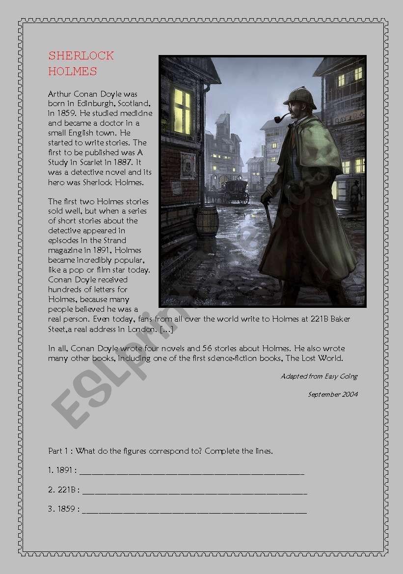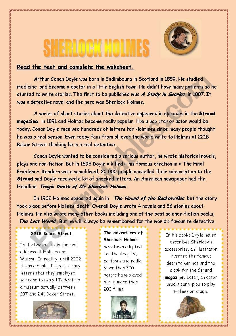 ESL Reading Comprehension Essay Worksheet On Sherlock Holmes