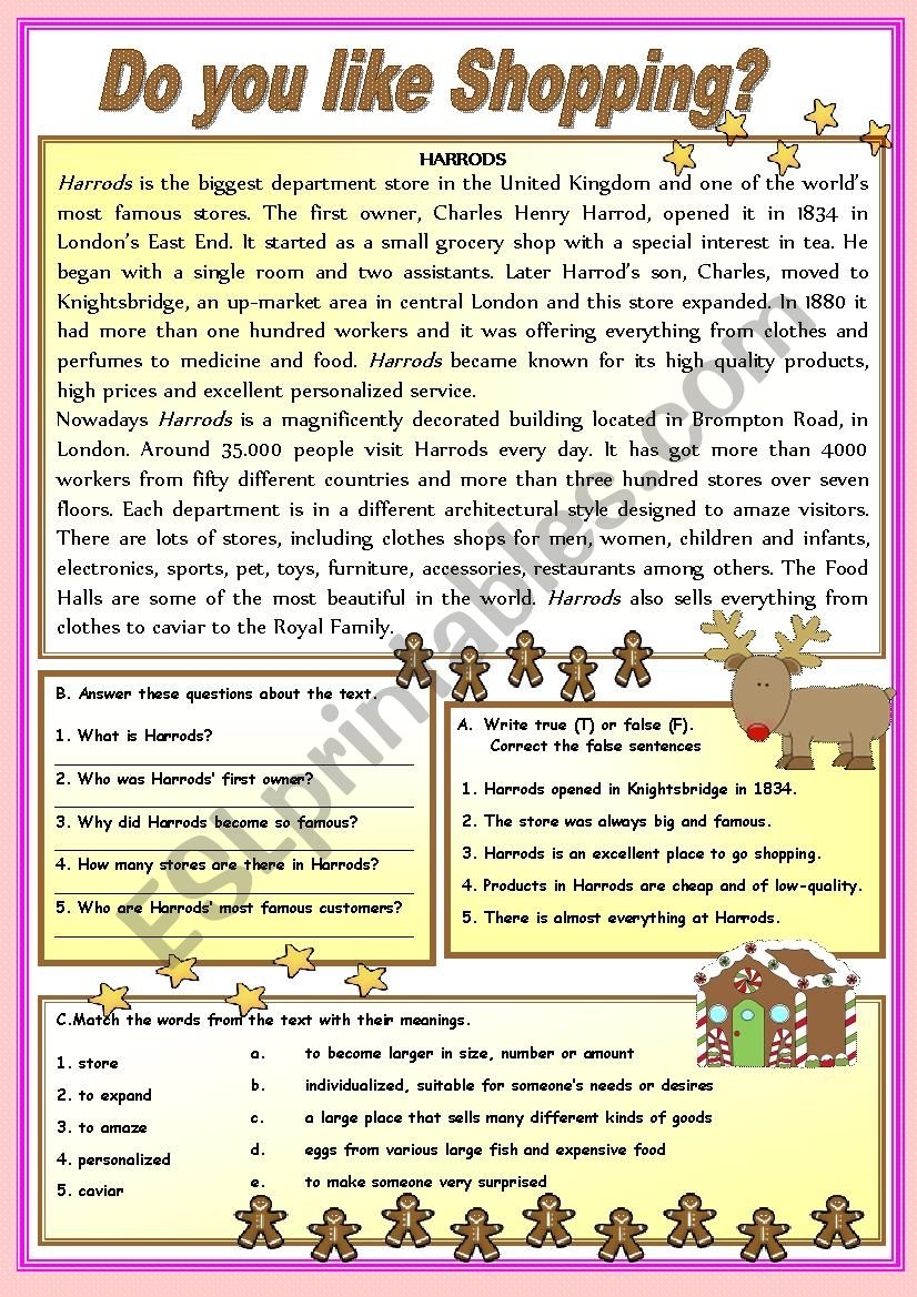 Do You Like Shopping Reading Comprehension ESL Worksheet By Thumbelina17