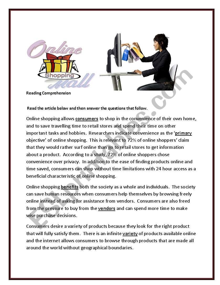 Reading Comprehension On Line Shopping ESL Worksheet By Aaisha86