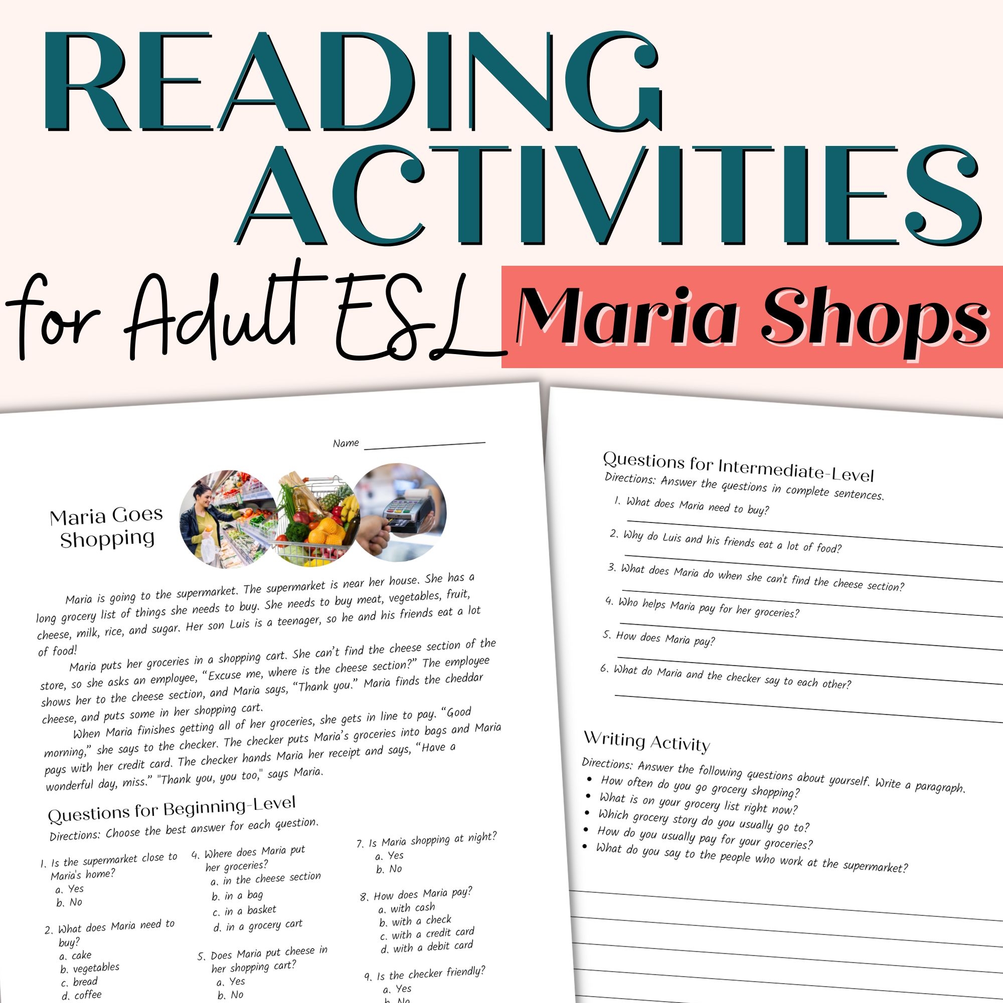 Reading Comprehension Passage And Activities For Beginner And Intermediate Adult ESL Maria Goes Shopping Classful