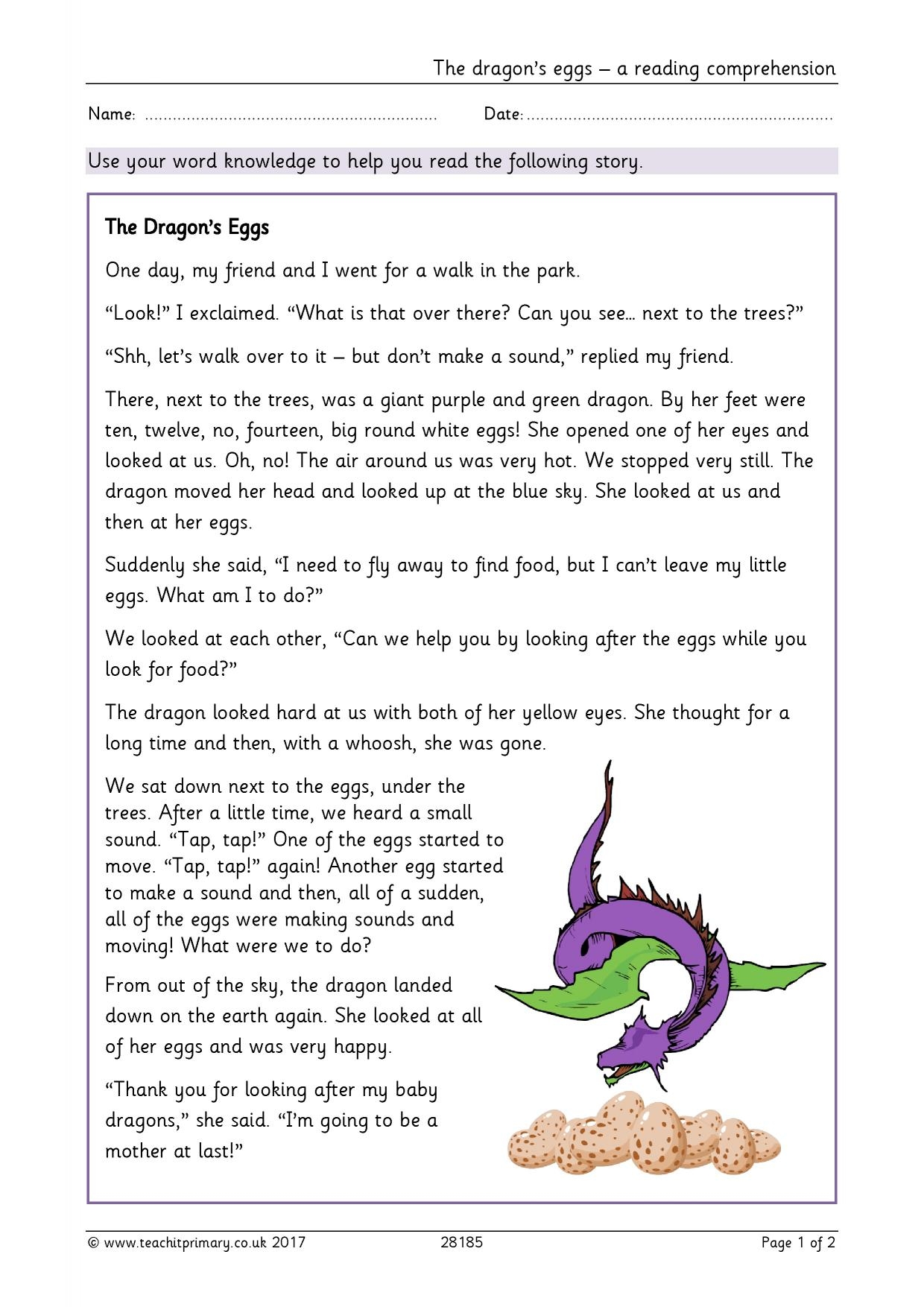 The Dragon s Eggs A Reading Comprehension Comprehension KS1 Teachit