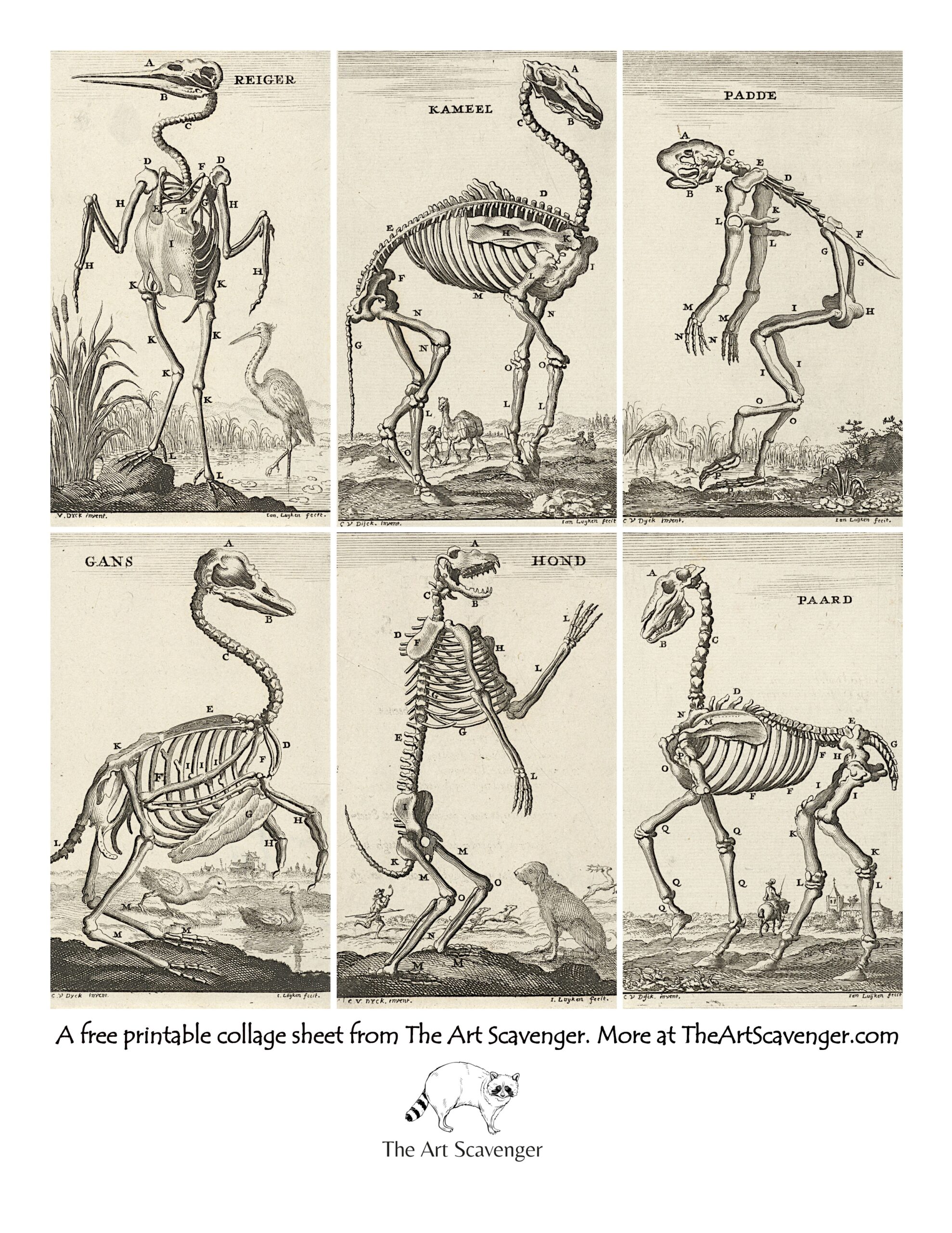 Free Animal Skeleton Illustration Collage Sheet Printables The Art Scavenger