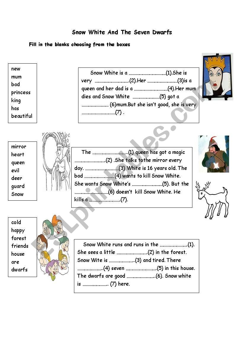 A Reading Worksheet For Vocabulary Exercise About Snow White And The Seven Dwarfs ESL Worksheet By Star Sukran