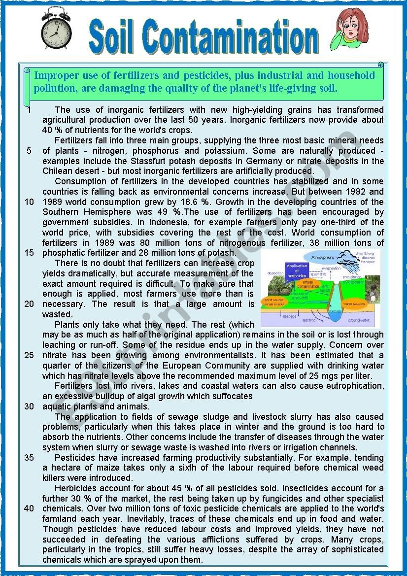 Soil Contamination READING Varied Comprehension Ex KEY ESL Worksheet By Karagozian