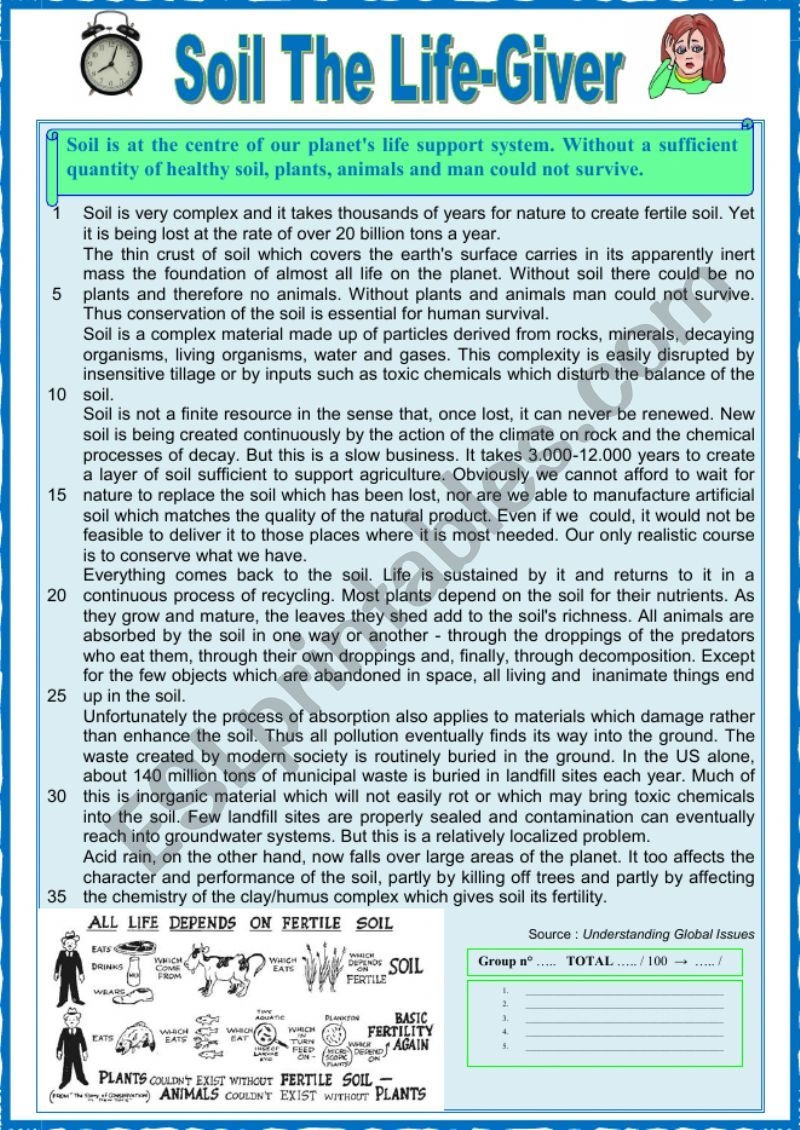 Soil The Life Giver READING Varied Comprehension Ex KEY ESL Worksheet By Karagozian