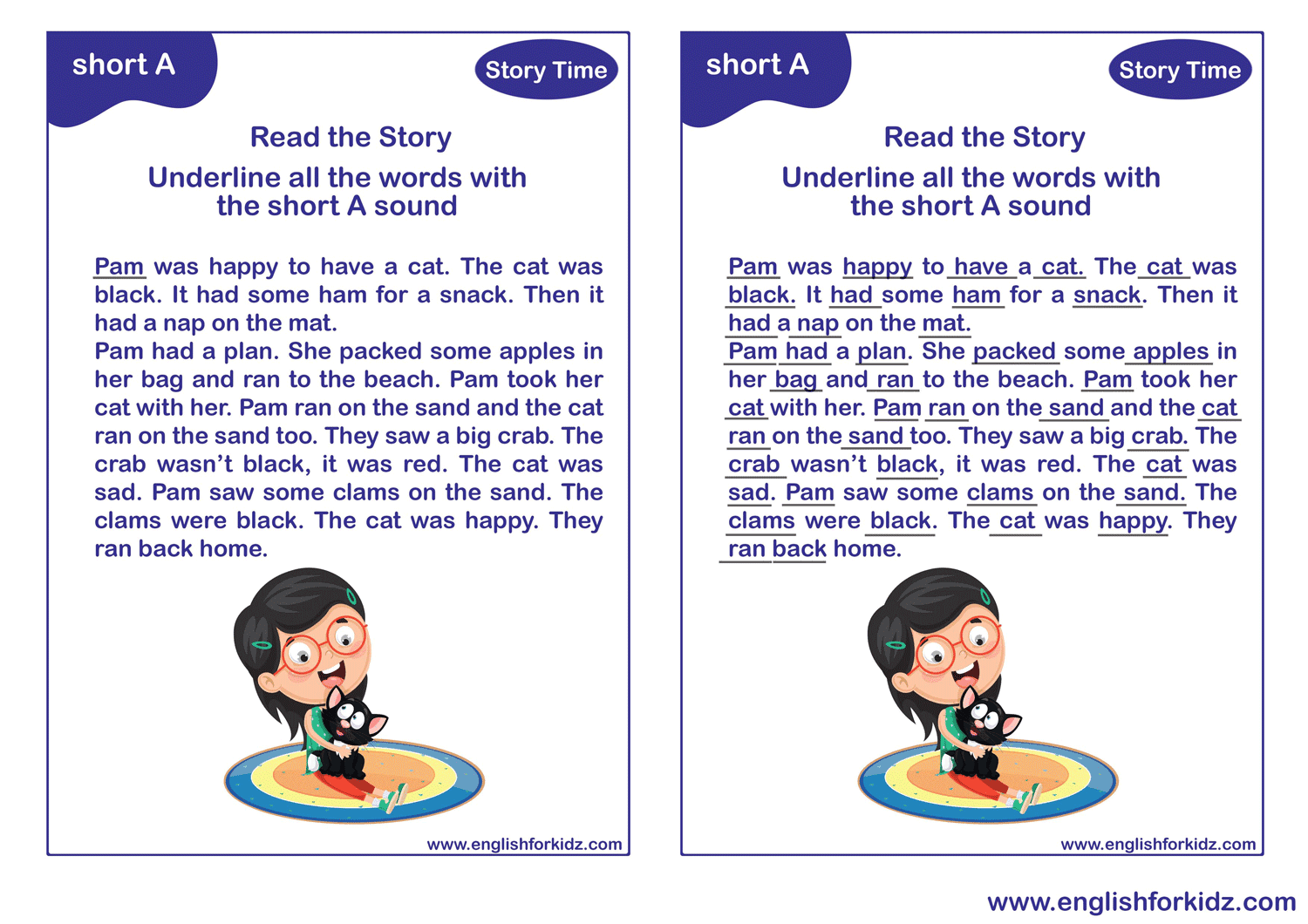 English For Kids Step By Step Short A Sound Worksheets