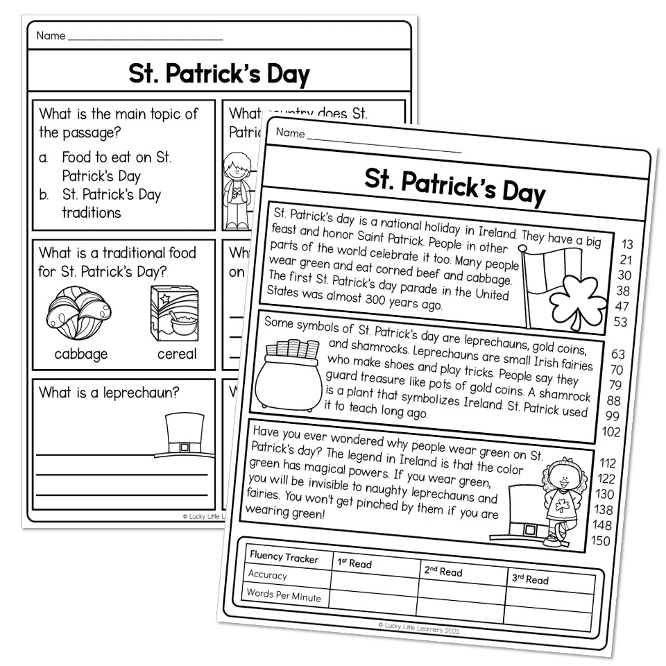 Spring Pack St Patrick s Day Reading Passage Lucky Little