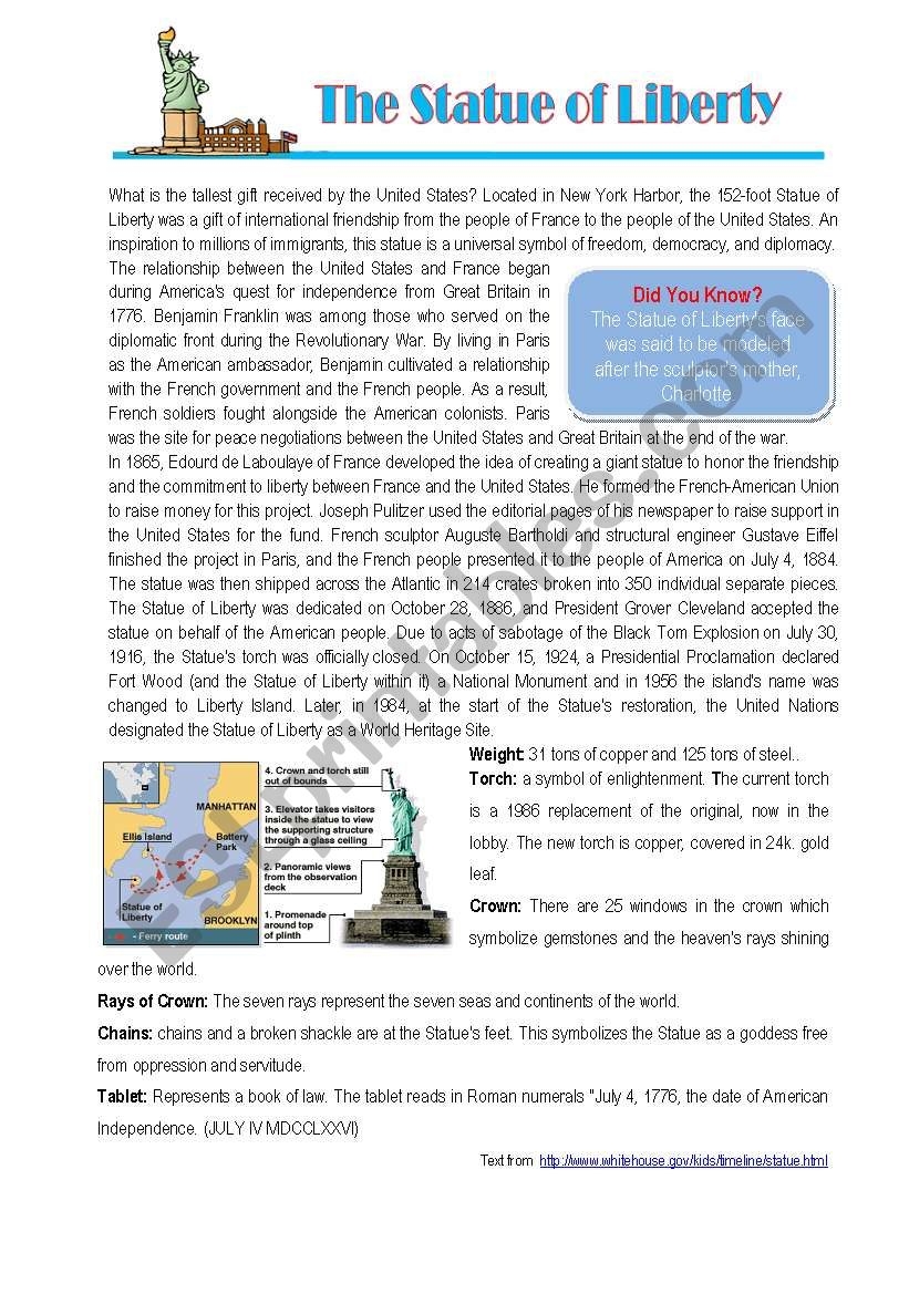 The Statue Of Liberty ESL Worksheet By Mmargalef