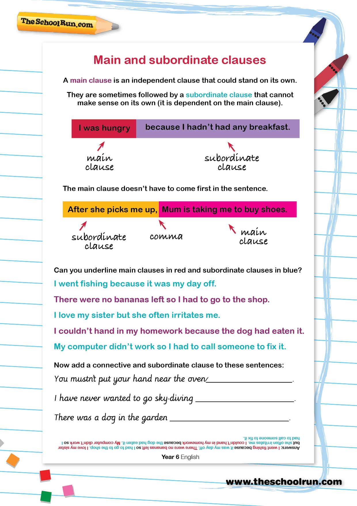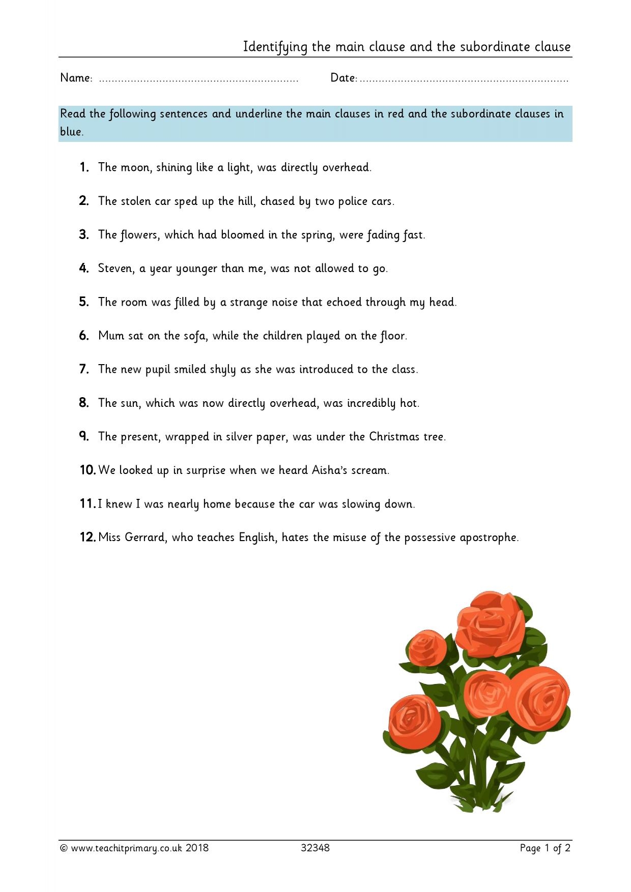 Main And Subordinate Clauses KS2 English